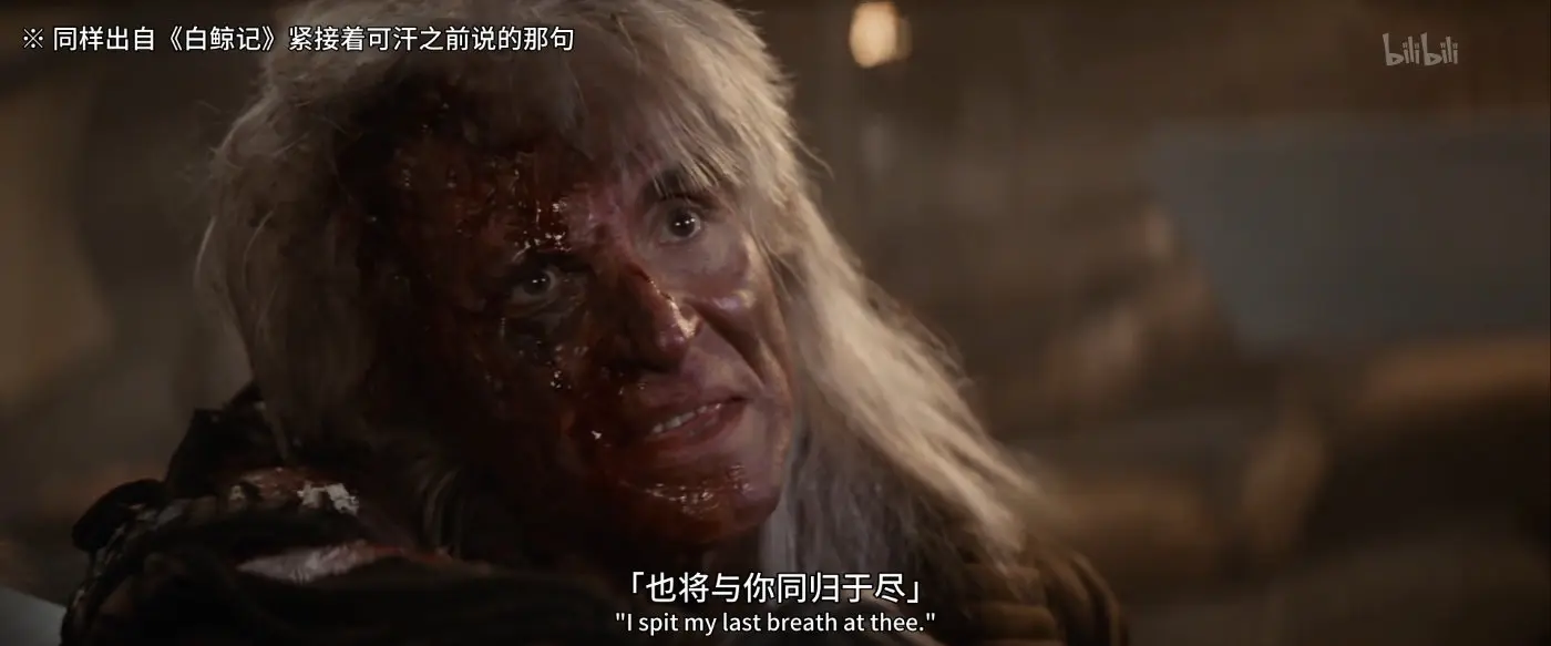 可汗是一个典型的莎剧式人物。新的家园由于邻星突发爆炸而改变轨道,造成气候巨变,使得他的臣民不得不在绝境中谋生,甚至让可汗失去了自己的妻子。这本与柯克舰长无关,但是可汗却将此归咎于“柯克舰长没有及时来看望我们”。可汗拥有一种颇为极端的二元思维,他对柯克的愤怒与怨恨蒙蔽了他的理性。当他的飞船在进取号前彻底失去了胜算时,他的欲望依然是复仇。误解引发的悲剧现实,牺牲燃起的复仇火焰,还有那些充满浪漫主义的自言自语,足以见得这个人物身上的莎剧色彩。