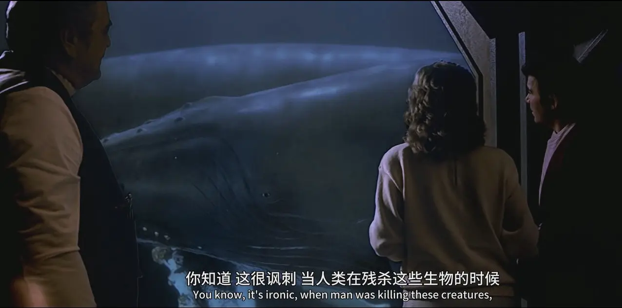 第一是动物保护的深刻主题。我们每天都在说环境保护,在说“人类不是地球的主人”,而在一部科幻电影中如何嵌入这样的主题又不显出说教意味是一个难题。影片采用的奇巧构思:座头鲸是智慧生物,座头鲸的同类成为了宇宙中的高级智慧,派遣探测器回到地球寻找同胞,既新颖又具有现实意义。在2020年的今天,看看影片中借泰勒博士之口对捕鲸行为的强烈谴责,再联想到野味带来的新冠病毒,人类贪欲的恶果在从屏幕中映照到了现实。